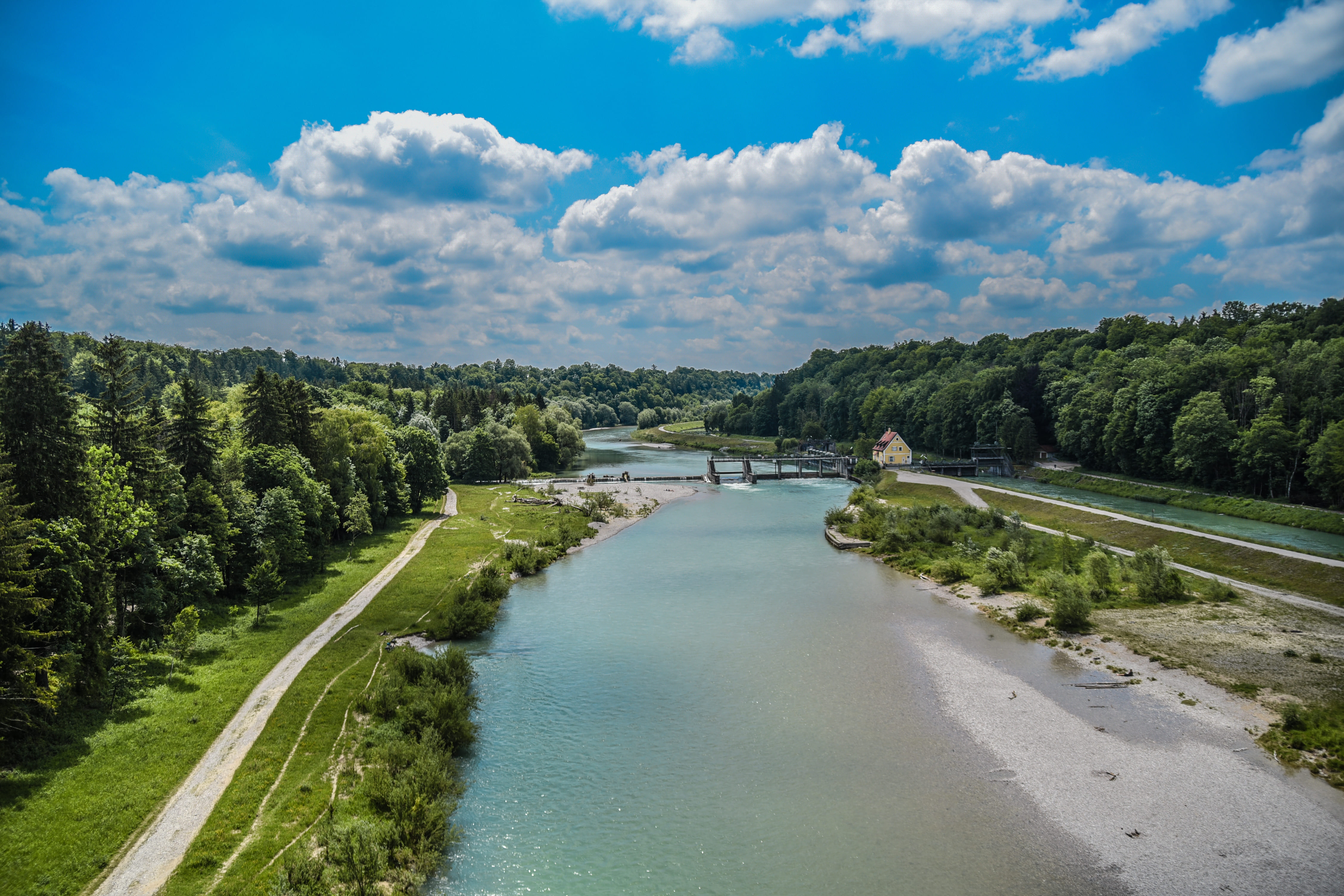 Die Isar, ein echter Münchner Klassiker, bietet zahlreiche Badestellen. Wer es etwas ruhiger und schattiger mag, findet zwischen der Max-Joseph-Brücke und dem Oberföhringer Wehr ein schönes Plätzchen. Seichtes Wasser und kleine Kiesbänke laden zum Baden und Entspannen ein. Die Etappe 9 führt direkt vom Wehr zur Max-Joseph-Brücke und bietet so eine gute Gelegenheit für einen Abstecher ins kühle Nass.