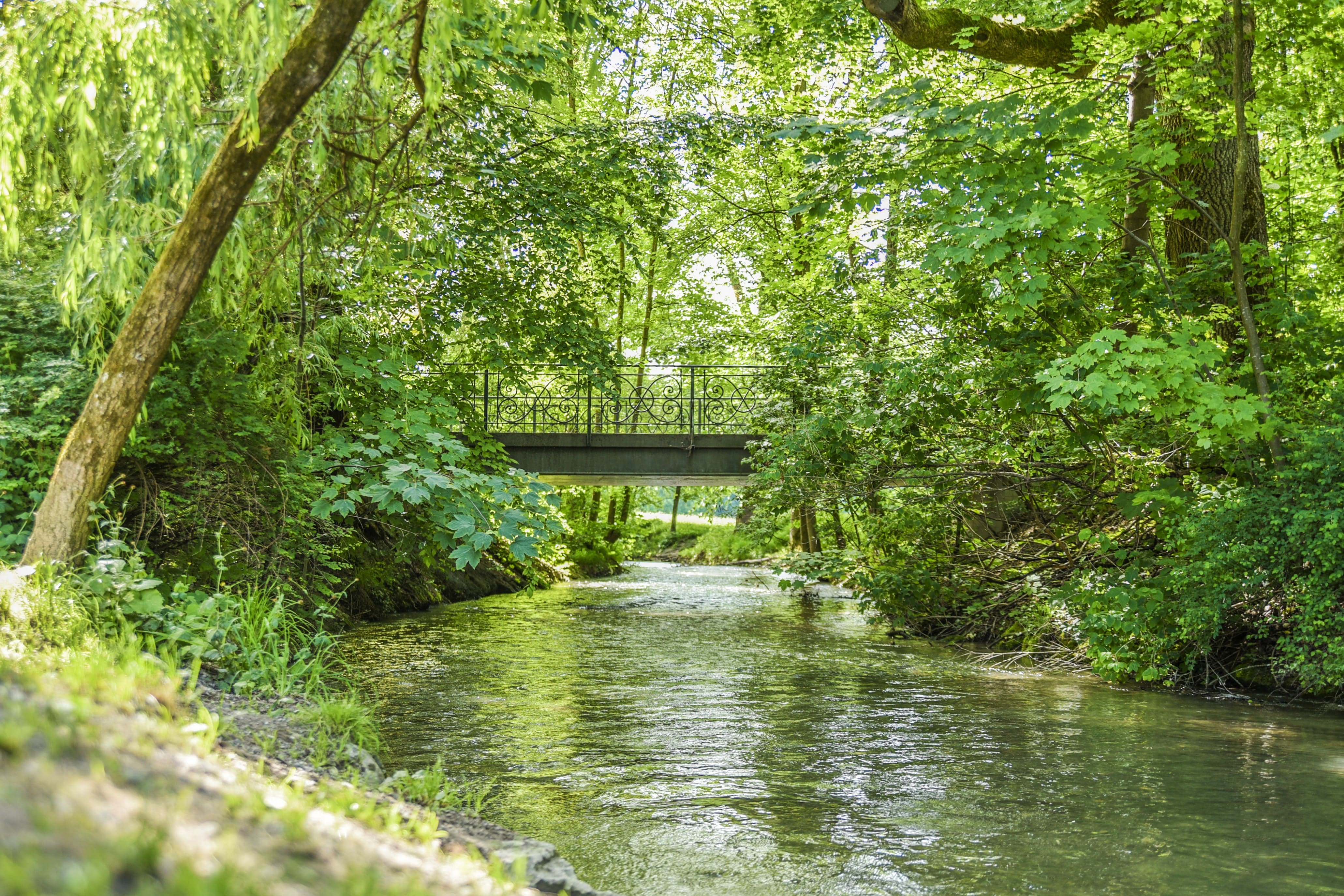 Ist der Schwabinger Bach im südlichen Teil des Englischen Gartens meist überlaufen, so ist er im nördlichen Teil umso idyllischer. Zwischen hohen Wiesen und vielen Bäumen kann man die Füße ins kühle Nass hängen oder sich von der sanften Strömung treiben lassen. Perfekt für eine Pause auf der Wanderung der Etappe 8 oder für eine erfrischende Abkühlung an einem heißen Nachmittag. Die besten Stellen befinden sich etwa auf Höhe der U-Bahn-Stationen Alte Heide und Studentenstadt.