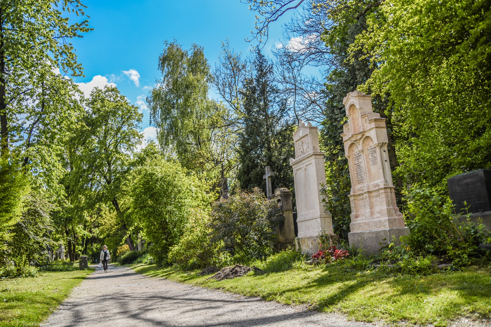 Etappe 10 führt direkt durch den Alten Südfriedhof und so kann man hier in aller Ruhe die Gräber erkunden und die Atmosphäre auf sich wirken lassen.